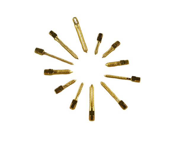 Для исключения коррозии анкерные штифты L4 покрыты золотым напылением, специальный хвостовик обеспечивает легкость вкручивания. Благодаря продуманной конусообразной форме снижают нагрузку на дентин.