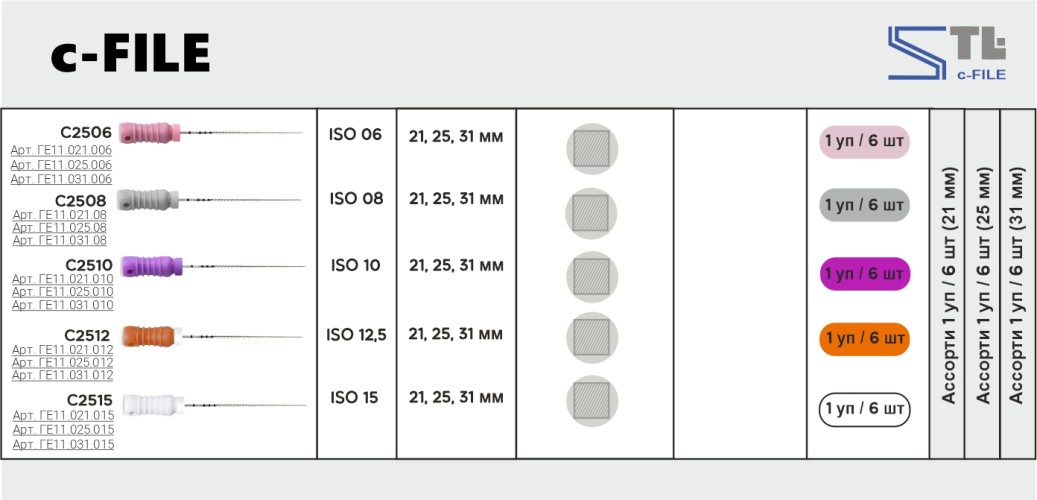 H-Files Pro-Endo - ручные эндодонтические инструменты, предназначенные для эндодонтического лечения осложненного кариеса. Применение: • Для обеспечения корневому каналу оптимальных для ирригации и последующего пломбирования размера и формы. • Для механической обработки корневого канала: выравнивание стенок пройденного корневого канала пилящими движениями. Варианты комплектации на выбор: • Различные номера по ISO: 08, 10, 15, 20, 25, 30, 35, 40, ассорти 08-10, 15-40. • Упаковка: 6 штук, длина 21 мм.